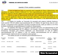 Página 82 de la sentencia del Tribunal de Cuentas de la Unión que encontró presuntas irregularidades en los costos del Puerto del Mariel